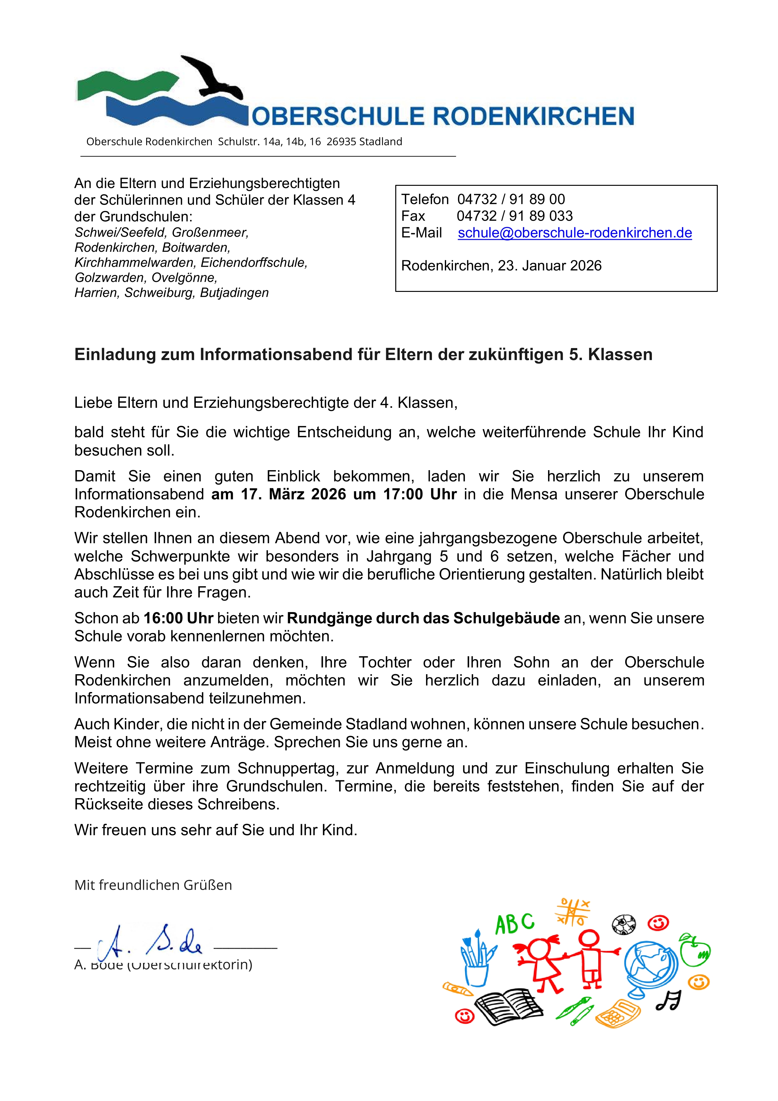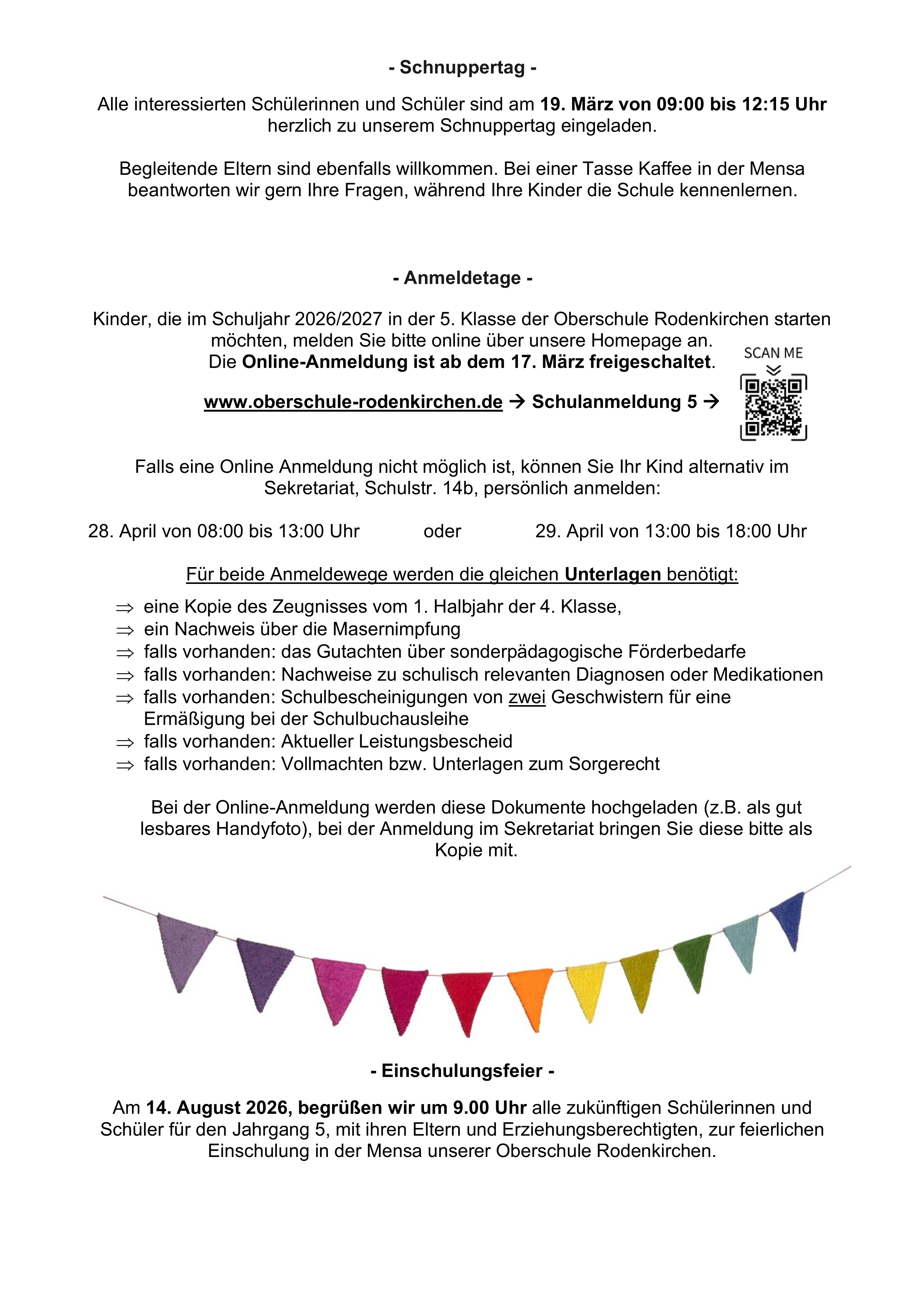 Anmeldungen zum Schnuppertag laufen über die Grundschulen bis zum 09.03.